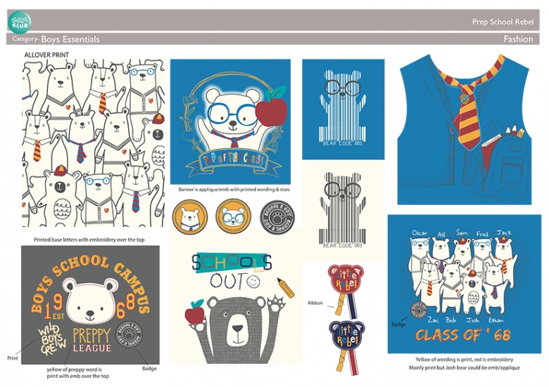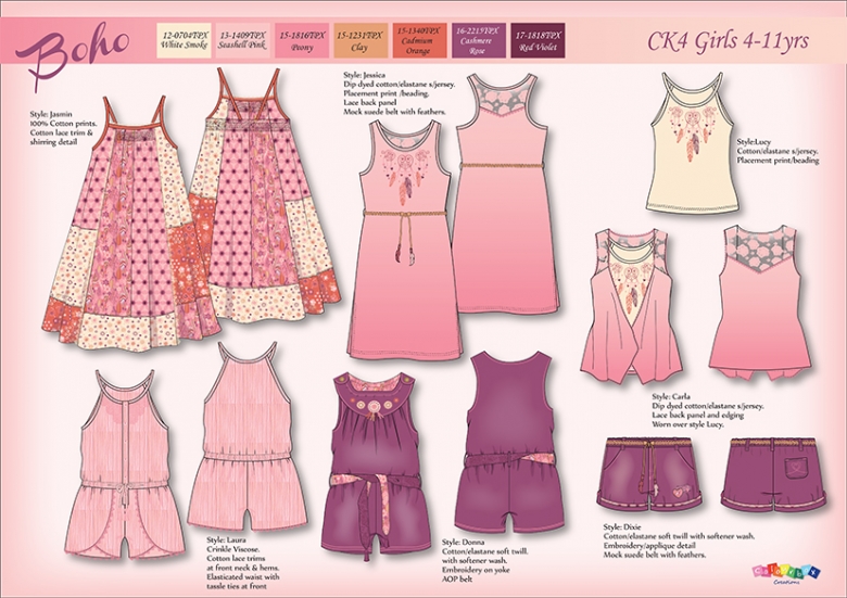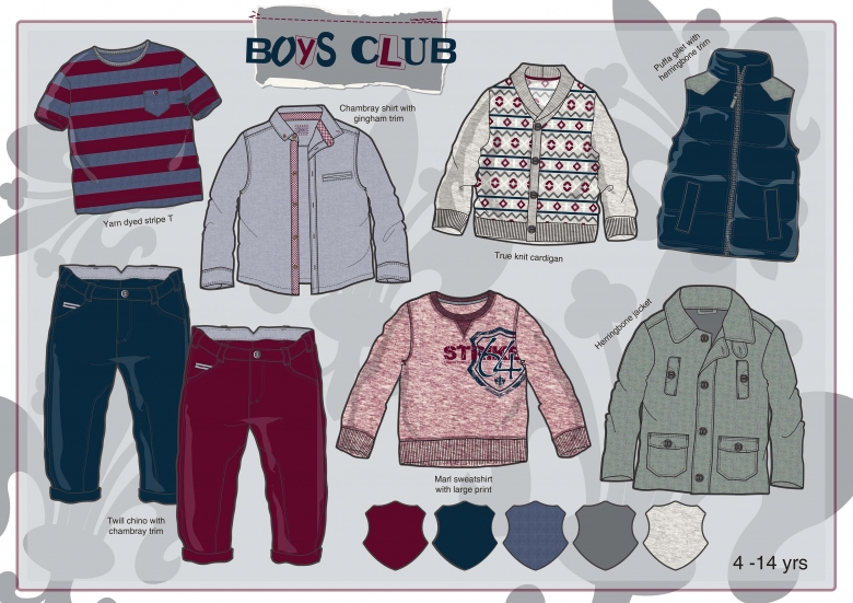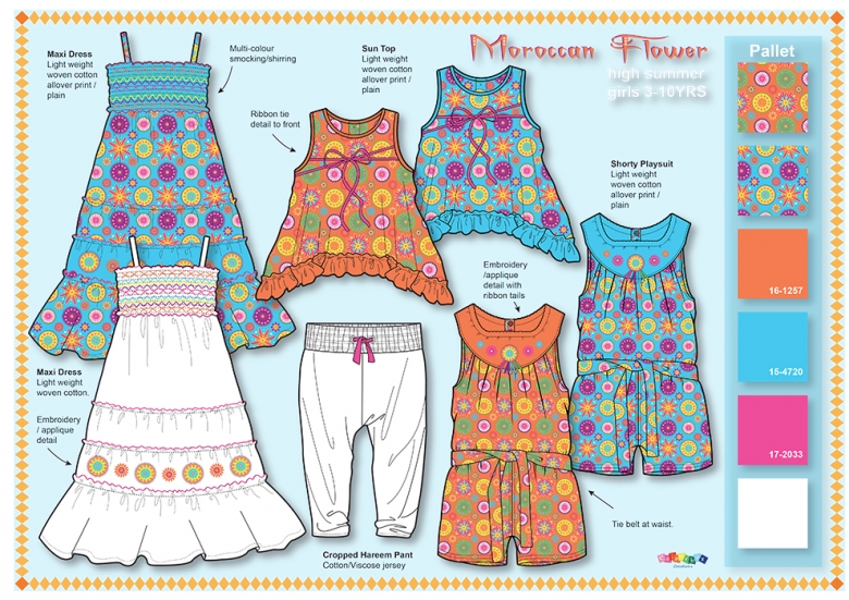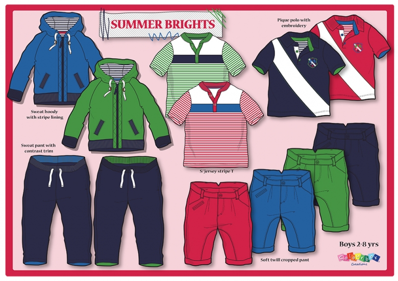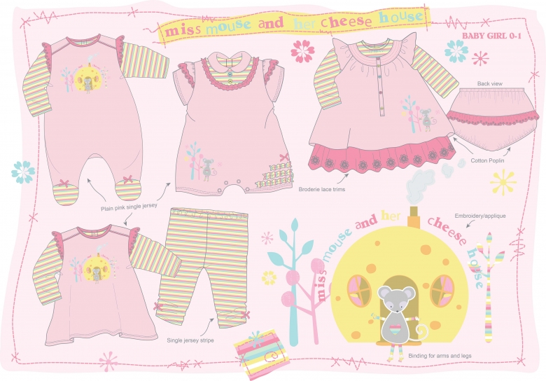 I have worked with the high street and the branded sector, working on both woven and jersey collections. I am creative and commercial with a keen eye for detail and colour. My fortes are babywear, boyswear and schoolwear.